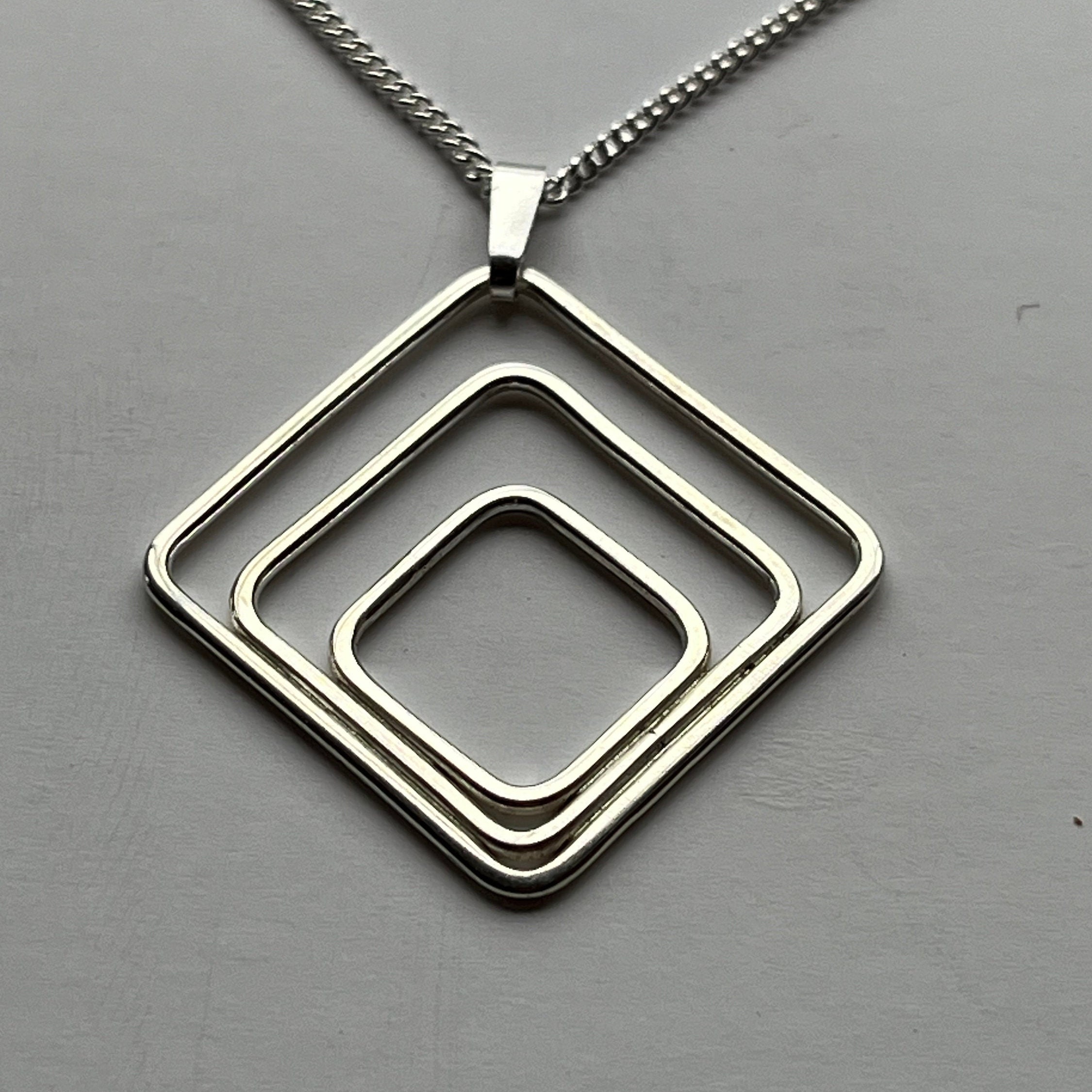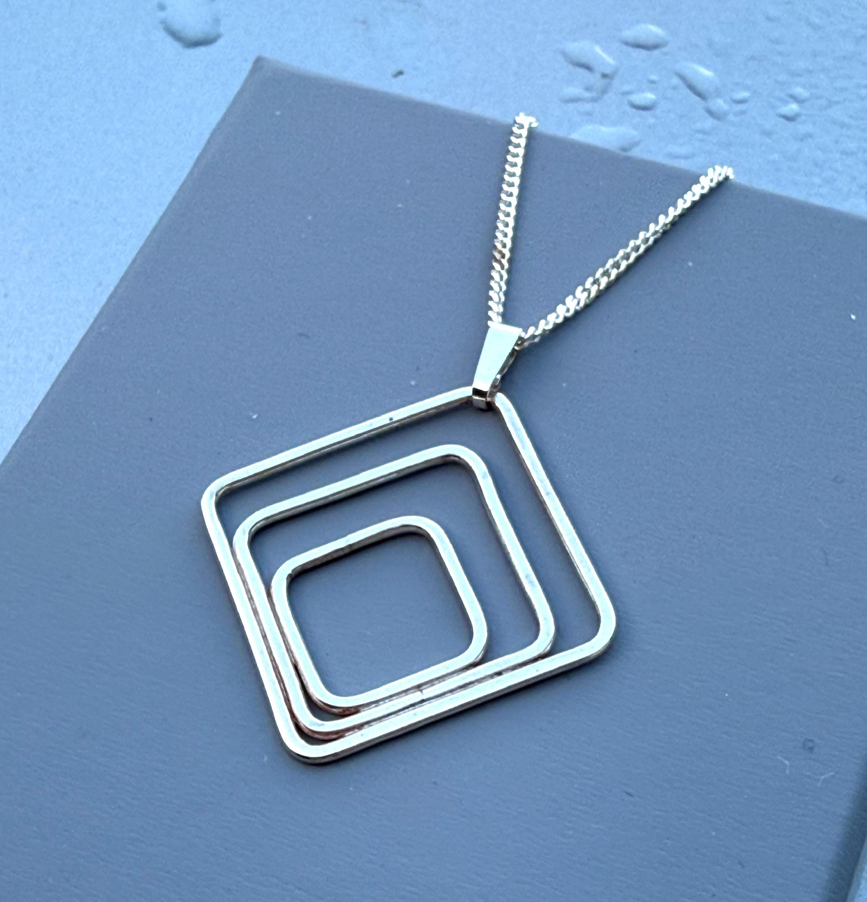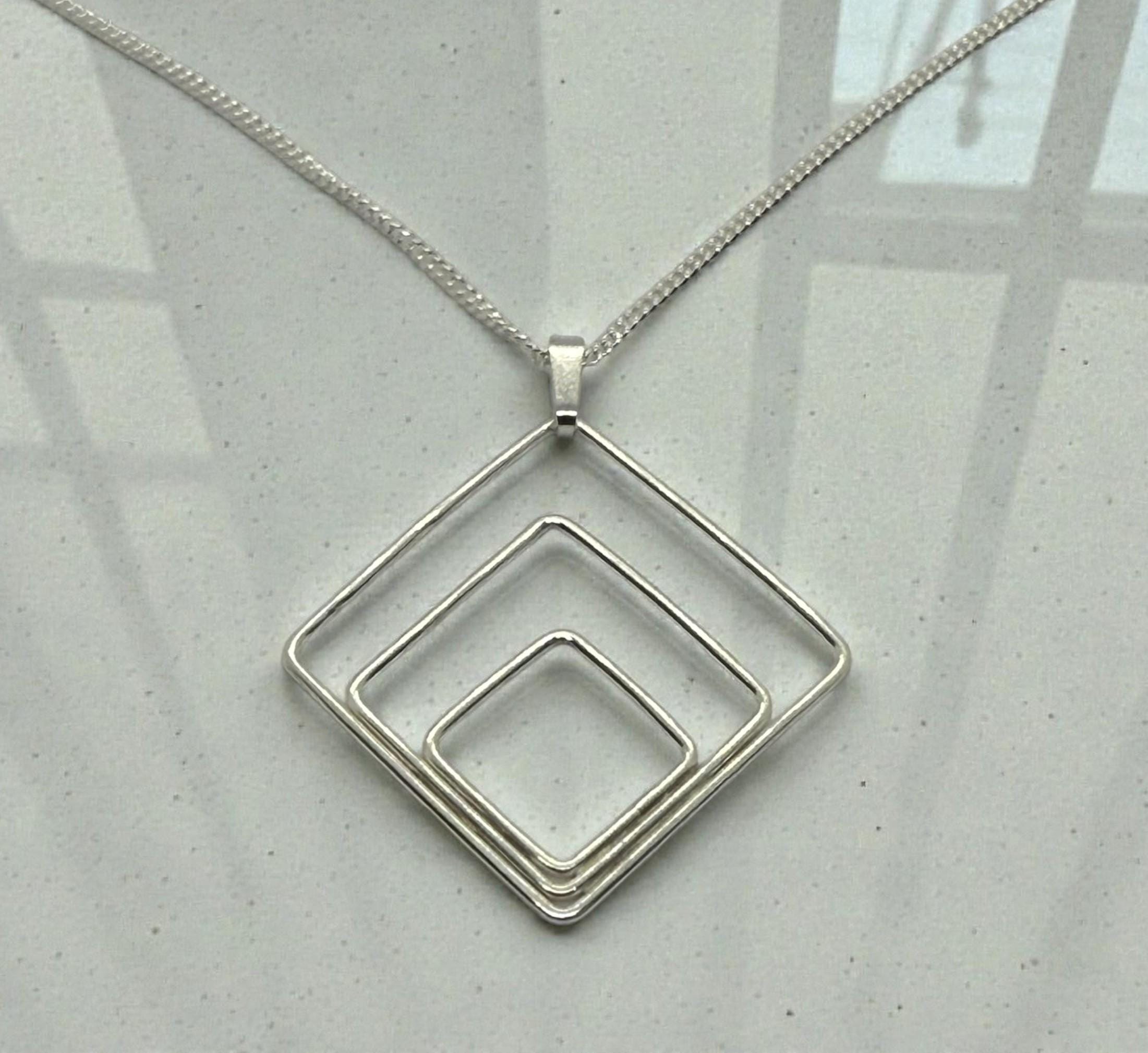 Elevate your style with our timeless Three Square Art Deco Pendant. Made of high-quality sterling silver, this pendant is the perfect combination of modern design and classic elegance, making it a versatile accessory for any occasion.