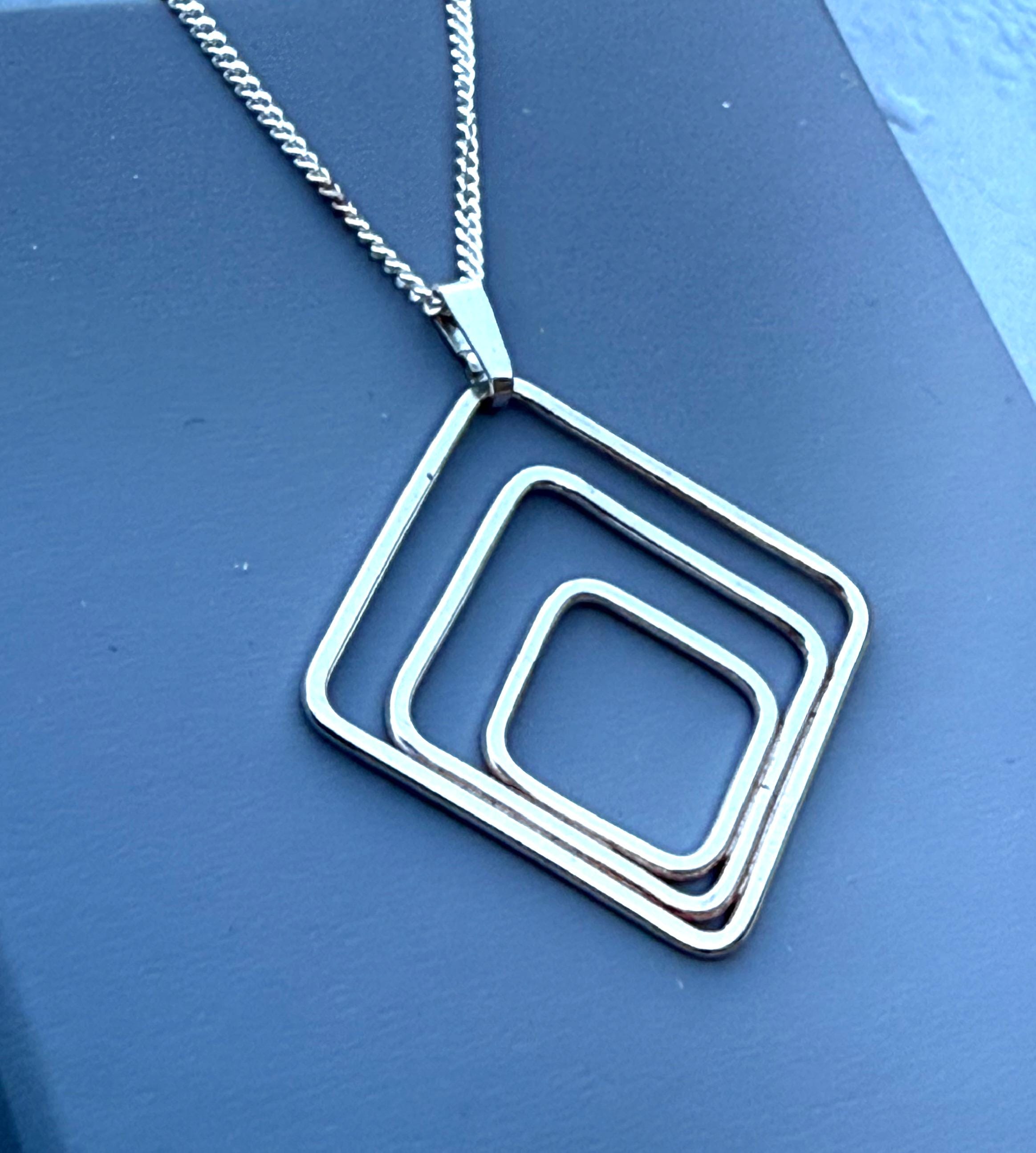 Each square in this pendant is meticulously crafted to gradually decrease in size, capturing the essence of Art Deco style in a harmonious and uniform way. The durable 1mm wire construction ensures longevity and comfort for all-day wear.