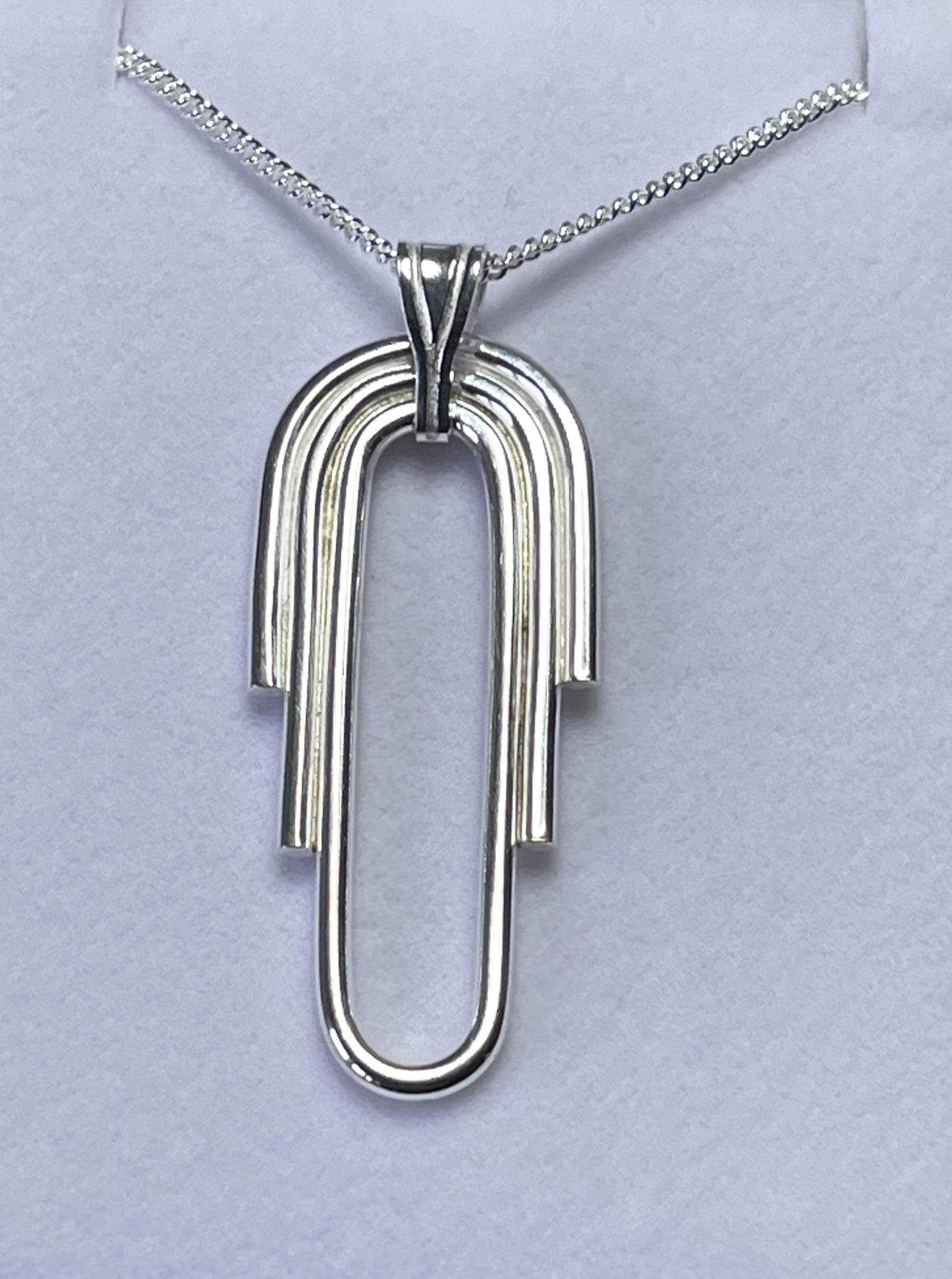 Elevate your jewellery collection with our stunning Deco and a Taste of Egypt Pendant. This beautiful piece combines the elegance of Art Deco with the allure of Egyptian design, creating a true masterpiece. Handcrafted from high-quality 1.5mm Sterling Silver wire, this pendant showcases traditional techniques that bring out its exquisite shape and intricate detailing.