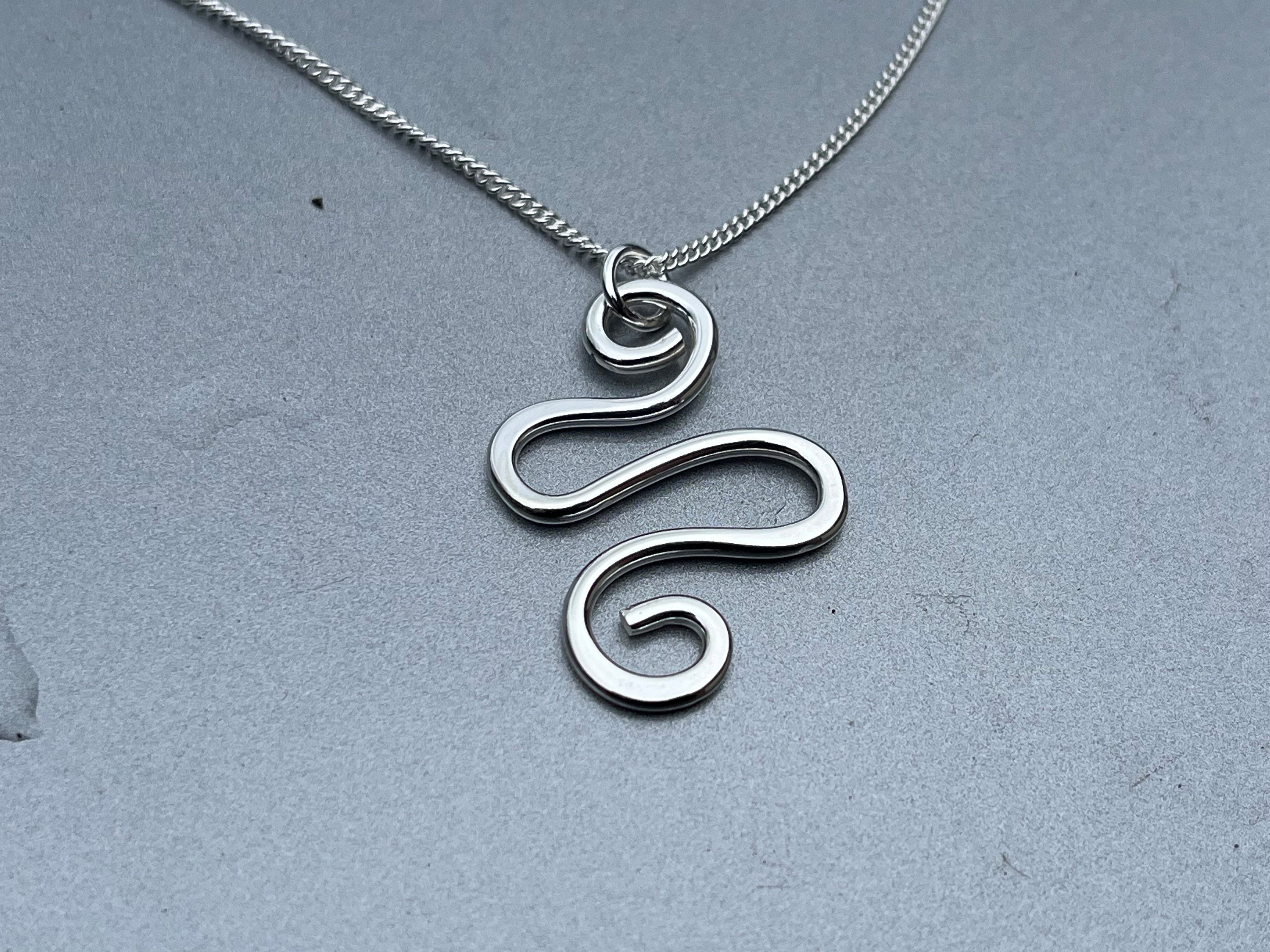 Elevate your style with the sleek and subtly edgy Snake Pendant. This modern take on a classic symbol is hand-formed from 1.8mm sterling silver wire using traditional techniques, ensuring a high-shine finish that beautifully catches the light.