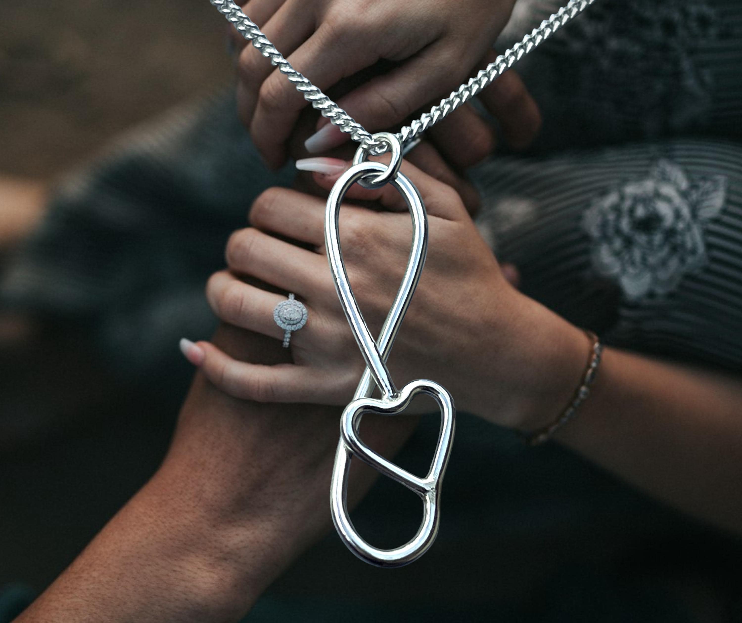 This Infinity Heart Pendant offers a minimal and modern twist on a classic symbol. Crafted from 1.2 mm sterling silver wire using traditional wirework methods, this pendant seamlessly blends sleek lines with expert craftsmanship. The infinity-heart silhouette hangs delicately on an 18" curb chain, making it perfect for everyday wear. The pendant is finished to a high shine and comes beautifully packaged in a soft-touch gift box.