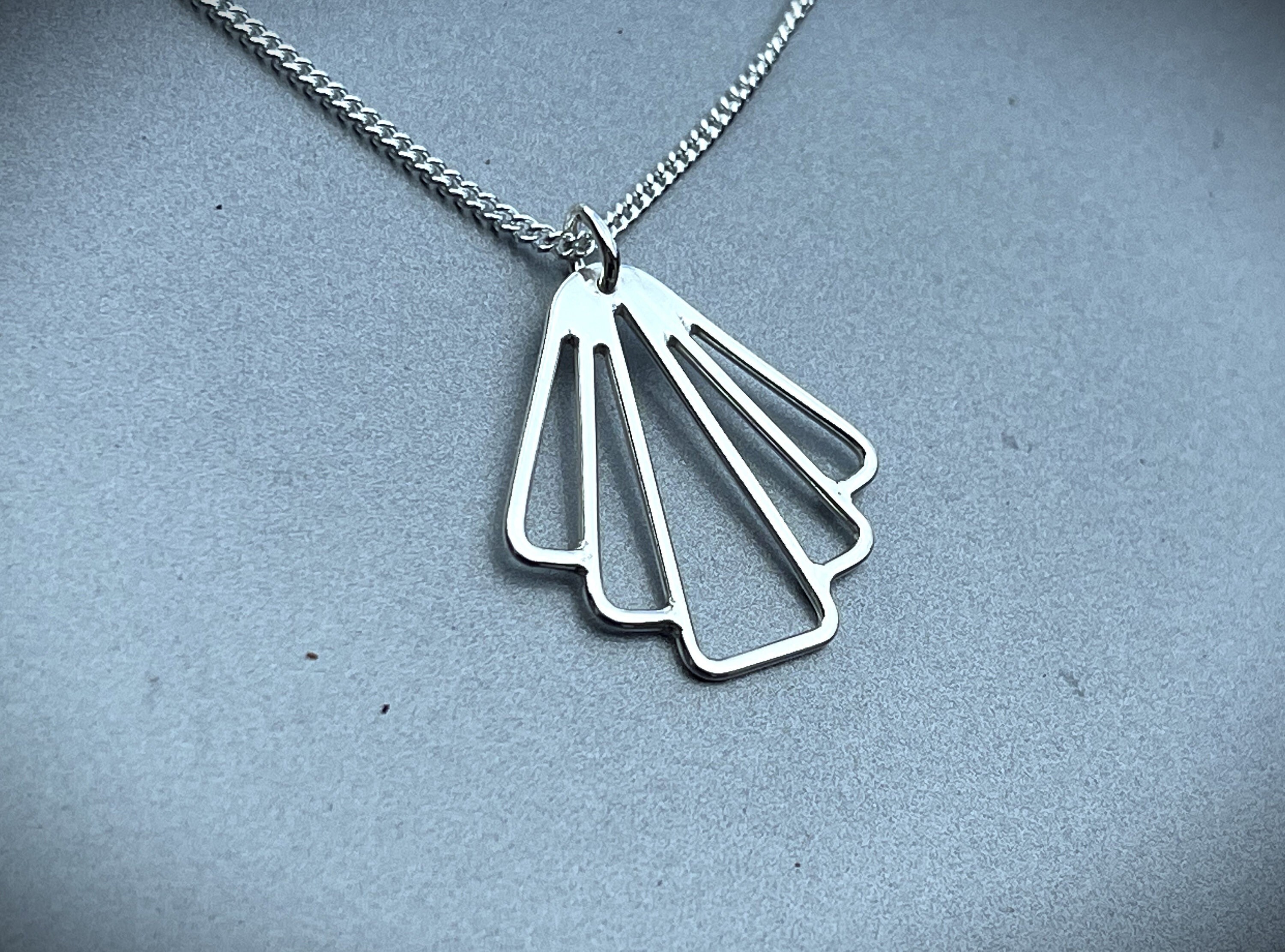 Introducing our Art Deco Pendant, where modern geometry meets timeless craftsmanship. This sleek and sculptural statement piece is effortlessly wearable, crafted from 1.2 mm sterling silver wire using traditional techniques to create a refined Deco-inspired silhouette with a bright, high-shine finish.