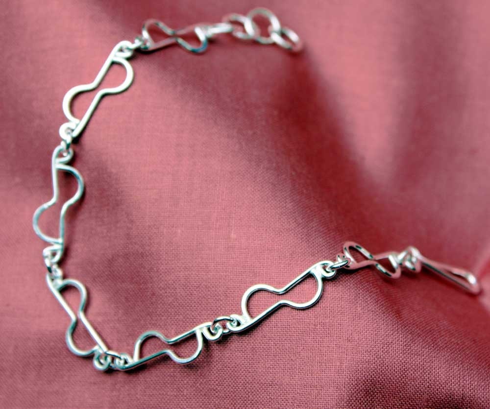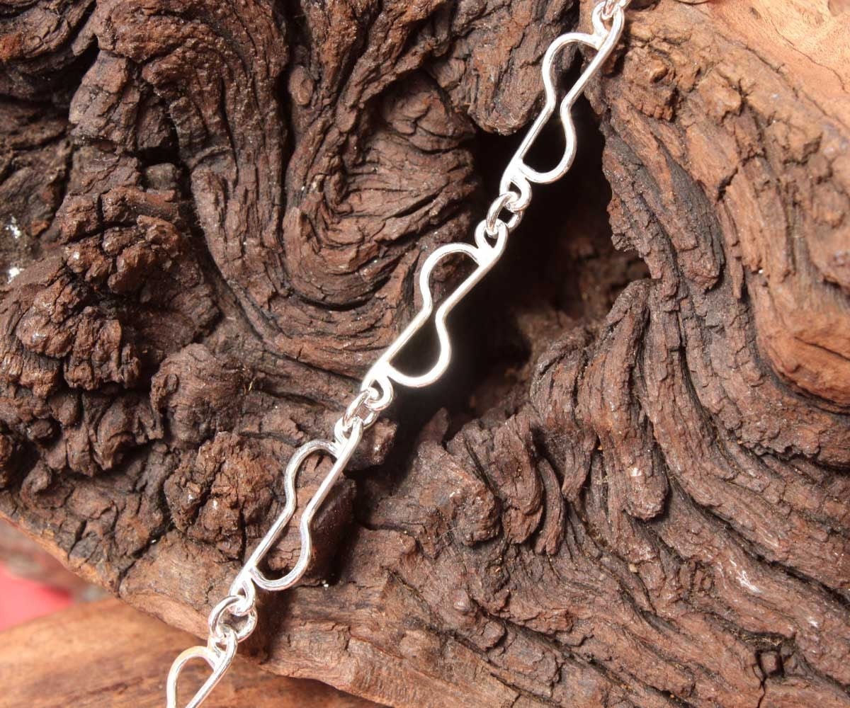 This delicate Demi Circle bracelet has been forged to give a textured look which catches the light in its facets. It is 190mm in length but has a number of clasp circles to make it adjustable.